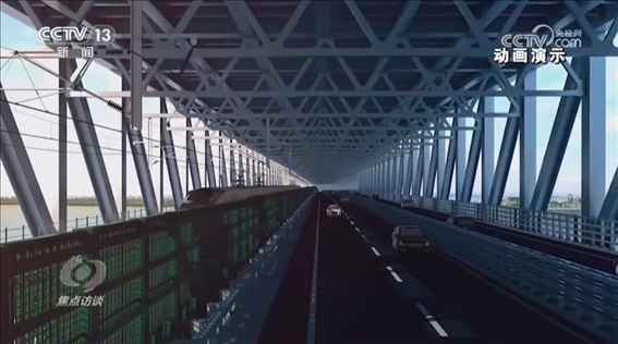 而說常泰長(zhǎng)江大橋是個(gè)超級(jí)工程,不僅因?yàn)樗小翱缍茸畲蟆钡倪@個(gè)頭銜,更因?yàn)樗鼡碛卸喾N功能,在這座上下兩層的橋上,上層為六車道高速公路,下層為兩線鐵路和四車道普通公路,這也是長(zhǎng)江上首座“三位一體”的跨江大橋。那么,多種功能的設(shè)計(jì)又是出于什么樣的考慮呢?