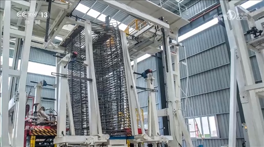 王輝:“通過手機(jī)掃描能夠數(shù)字化顯示鋼筋所有的生產(chǎn)信息,鋼筋智能生產(chǎn)的設(shè)備把原材料鋼筋做成單元件,通過這個(gè)設(shè)備的組裝形成了鋼筋片體。像這樣的片體5號(hào)塔要用3萬個(gè),大概分成了3200組,每一組鋼筋用的部位都不一樣,為了精準(zhǔn)識(shí)別它用在哪里,每一組要給它一個(gè)識(shí)別信息,做一個(gè)二維碼,通過手機(jī)掃描就可以知道它要用在哪個(gè)地方?!?/p>