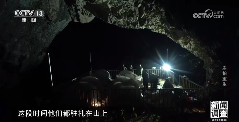 調查用的工具、保險繩、干糧、帳篷,僅僅是這些必需品,他們的背包就有好幾十斤重。無人區(qū)里沒有路,沿途基本都是密集的樹林和雜草,隊員們只能用砍刀開路。有些崖壁是直接懸空的,根本沒有著力點。隊員們就從山林里找來廢棄的木頭,用鐵絲捆在一起,搭成木橋和圍欄。走了四個多小時,他們終于在一處懸崖發(fā)現(xiàn)了野生崖柏。他們手中的儀器叫做定位器,可以精確記錄崖柏生長地點的經(jīng)緯度和海拔,給科研提供更精確的信息。