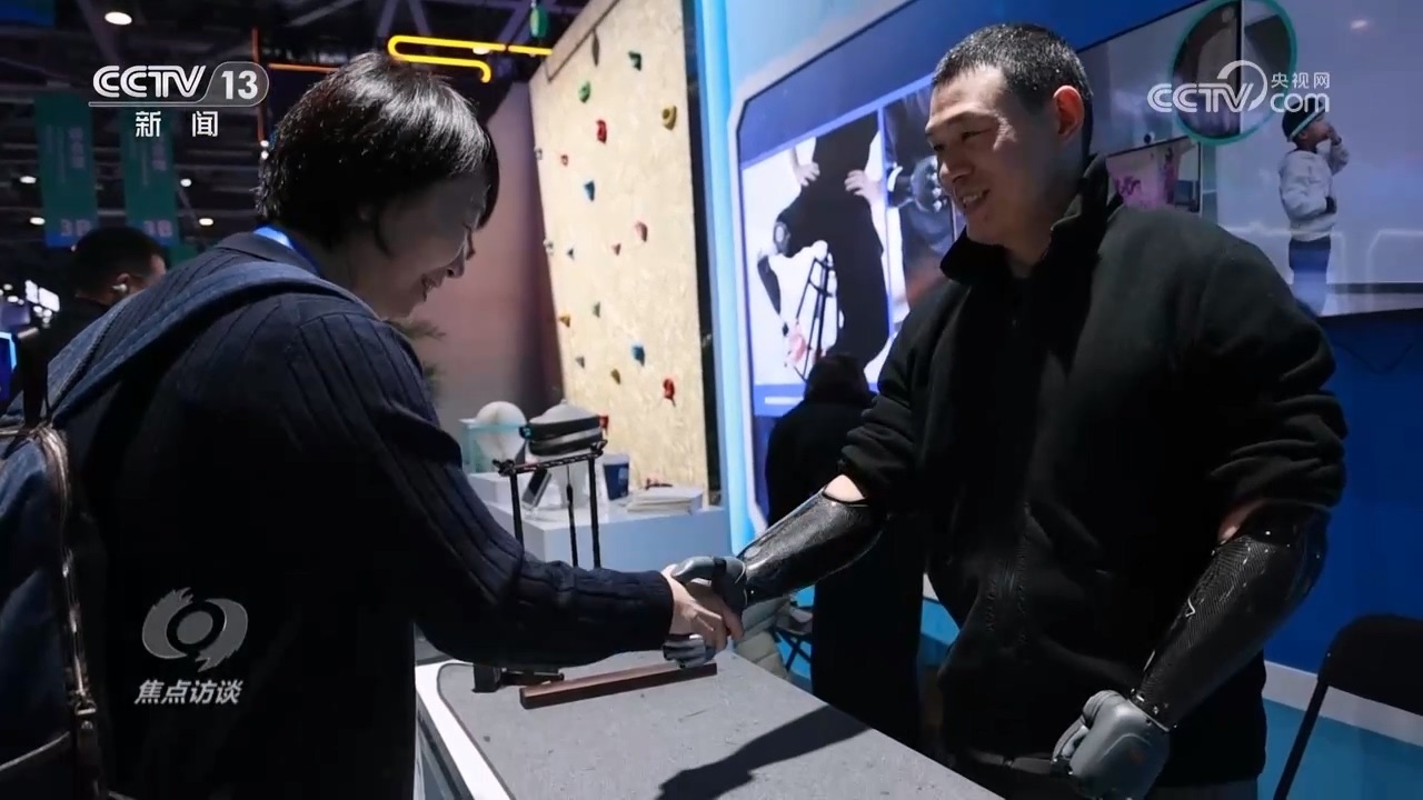 博覽會(huì)現(xiàn)場(chǎng),一位坐在角落里的中年男子引起了我們的注意。他叫倪敏成,九歲時(shí)因?yàn)橐馔馐ルp手,但讓他更感意外的是,30年后,腦機(jī)接口技術(shù)讓他重新?lián)碛辛艘浑p智能仿生手。