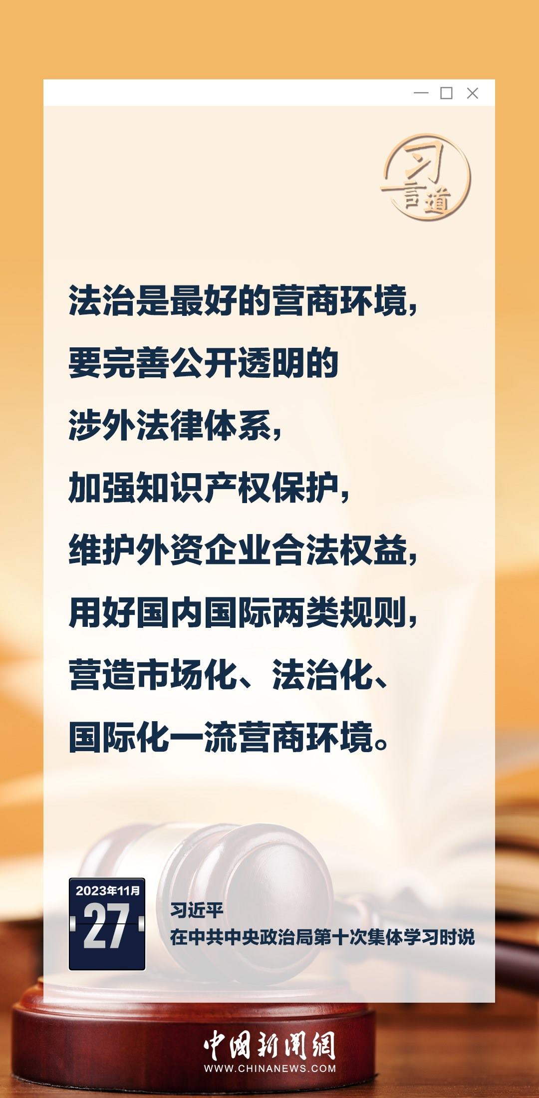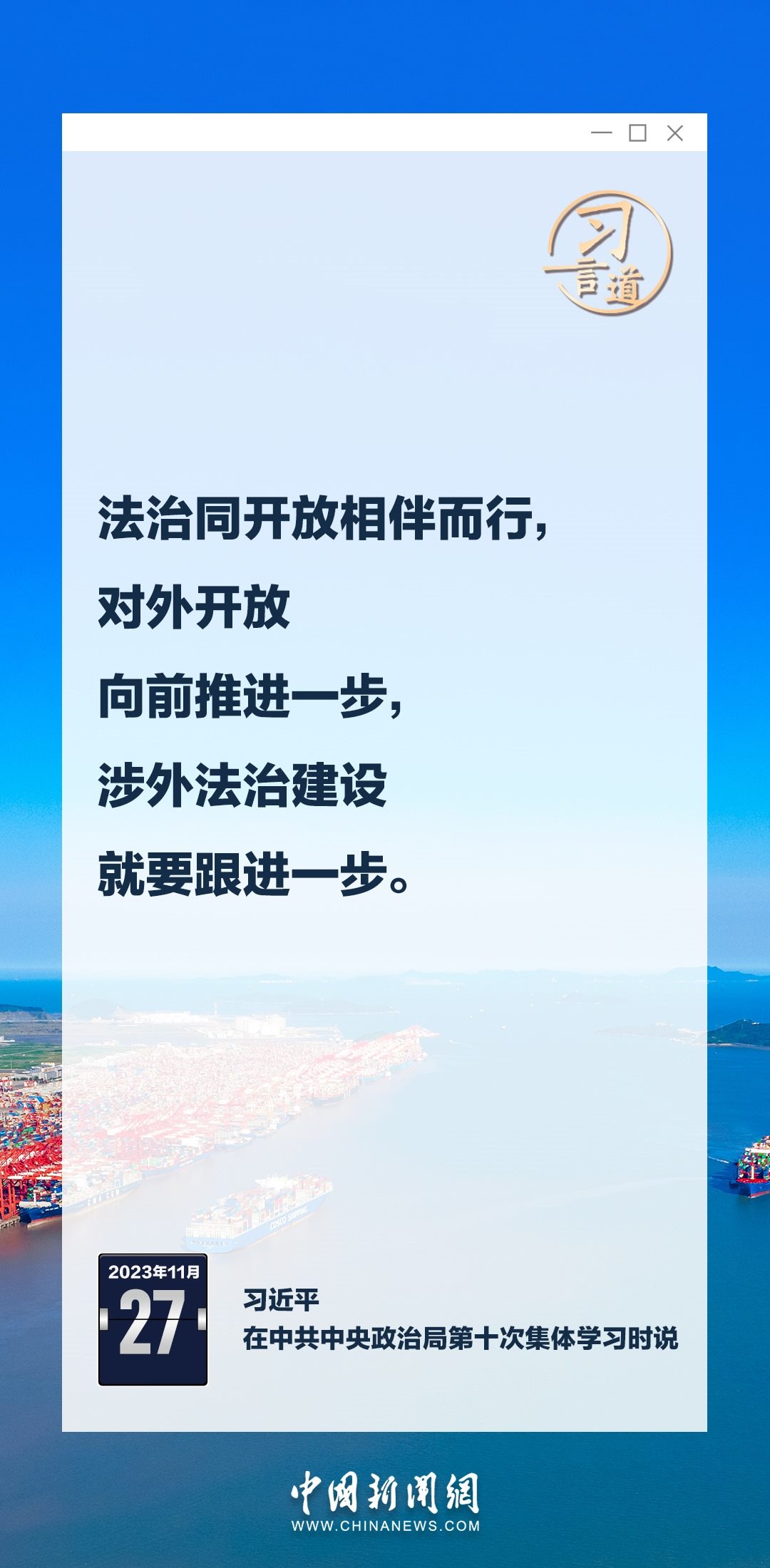 中共中央政治局11月27日下午就加強(qiáng)涉外法制建設(shè)進(jìn)行第十次集體學(xué)習(xí)。中共中央總書記習(xí)近平在主持學(xué)習(xí)時強(qiáng)調(diào)——