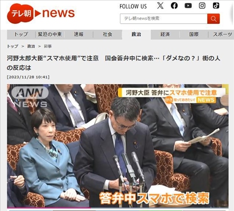 ·據(jù)日媒報道,27日,日本參議院預(yù)算委員會公開答辯中,數(shù)字大臣河野太郎在回答問題時,拿出手機(jī)試圖查詢資料,被委員長叫停。