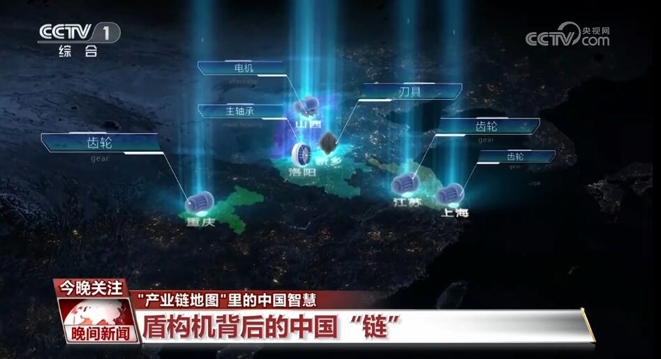 盾構(gòu)機(jī)又稱(chēng)“鋼鐵穿山甲”,是開(kāi)挖隧道的利器。一臺(tái)盾構(gòu)機(jī)拆解下來(lái),由1萬(wàn)多個(gè)零部件組成?,F(xiàn)在我們看到的是這些零部件的“產(chǎn)業(yè)鏈地圖”??梢钥吹?,刀具和主軸承主要聚集在河南,電機(jī)主要是在山西,齒輪主要分布在長(zhǎng)三角和重慶。而如果回到十年前,當(dāng)時(shí),這條產(chǎn)業(yè)鏈上還存在一些短板和斷點(diǎn)。像軸承、減速機(jī)、刀具這樣的關(guān)鍵部件,國(guó)內(nèi)企業(yè)還制造不了??扇缃瘢軜?gòu)機(jī)“心臟”核心零部件的關(guān)鍵技術(shù)已經(jīng)突破。我國(guó)盾構(gòu)機(jī)的上下游企業(yè)已經(jīng)有上千家,僅中鐵裝備,盾構(gòu)機(jī)訂單總數(shù)就超過(guò)1600臺(tái),出口全球30多個(gè)國(guó)家和地區(qū),產(chǎn)銷(xiāo)量連續(xù)六年世界第一。