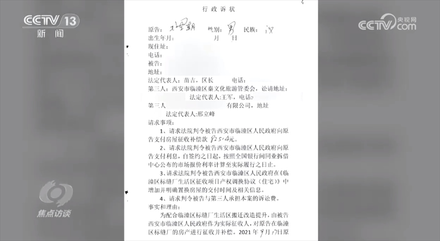 幾次協(xié)商未果后,2022年4月,張庚武、王軍朝等112名標(biāo)縫廠社區(qū)居民分別向西安鐵路運(yùn)輸中級(jí)法院提起了行政訴訟,要求臨潼區(qū)政府支付征收安置補(bǔ)償款及利息。