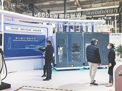 圖③ 首屆鏈博會(huì)上展示的大功率超充站。本報(bào)記者 洪星攝