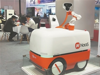 圖② 首屆鏈博會(huì)上展示的智電充電機(jī)器人。本報(bào)記者 洪星攝