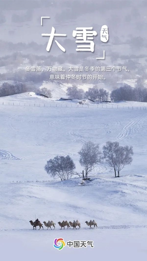 大雪節(jié)氣期間,由于氣溫進一步下降,降雪或積雪的概率都有所增加。小雪節(jié)氣,雪隨下隨融,而到了大雪節(jié)氣,雪隨下隨積,能“坐住了”。此時,新疆北部、西北地區(qū)東部、東北等地要警惕強風(fēng)雪天氣的出現(xiàn)。