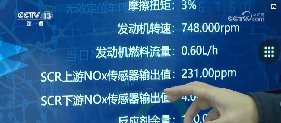 在另外一間實(shí)驗(yàn)室,這塊大屏幕連接著全國(guó)308萬(wàn)國(guó)6柴油車(chē),每輛車(chē)發(fā)動(dòng)機(jī)的工作狀態(tài)和污染物的排放裝置是否正常運(yùn)行一目了然。