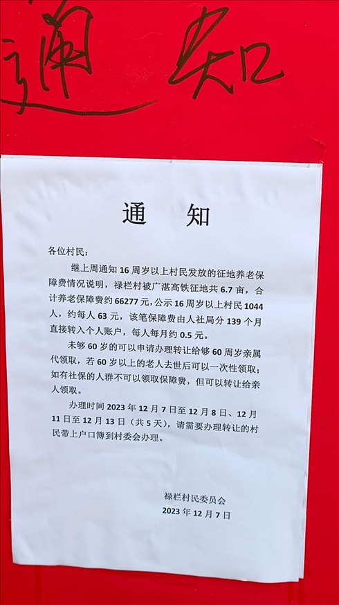 ·廣東一村發(fā)征地養(yǎng)老保障費(fèi)每人每月0.5元?村委會(huì)回應(yīng)稱錢少人多。