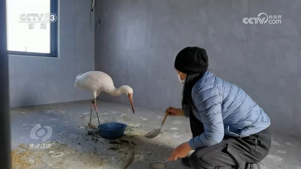 王威:“咱們濕地邊上撈的小魚,每天飼喂,逐漸適應了環(huán)境,體質(zhì)體況慢慢恢復了?!?/p>