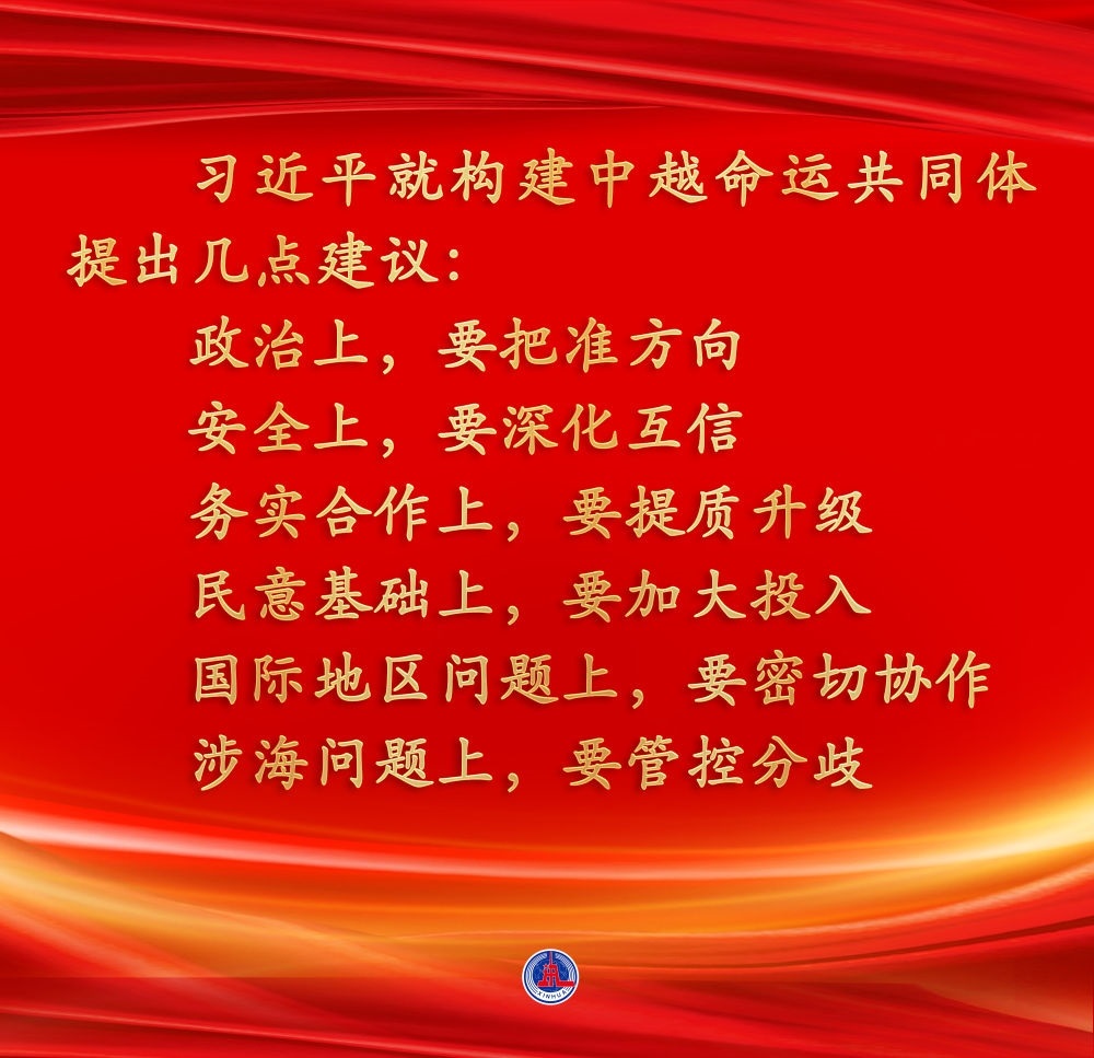 兩位總書記都認為,中越作為友好近鄰,理想相同,理念相通。作為好鄰居、好伙伴、好兄弟、好同志,中越構(gòu)建具有戰(zhàn)略意義的命運共同體具有天時、地利、人和的獨特優(yōu)勢。雙方應(yīng)該繼承老一輩領(lǐng)導(dǎo)人締結(jié)的傳統(tǒng)友誼,共同努力構(gòu)建命運共同體,走好各自的現(xiàn)代化道路,實現(xiàn)互利共贏、美美與共,造福兩國人民,也為地區(qū)和平與繁榮作出積極貢獻。