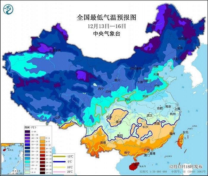 預(yù)計(jì),12月13日夜間至16日,一股強(qiáng)寒潮將自新疆開始,自西向東、自北向南影響我國(guó),大部地區(qū)將先后出現(xiàn)4~6級(jí)偏北風(fēng),氣溫隨之下降8~12℃,西北地區(qū)、內(nèi)蒙古中西部、華北西部和南部、黃淮北部及江淮東部、江南、華南大部、貴州等地的部分地區(qū)降溫可達(dá)14℃以上。新疆山口地區(qū)有9~10級(jí)、陣風(fēng)12~13級(jí)大風(fēng),東部和南部海區(qū)有6~8級(jí)、陣風(fēng)9~10級(jí)大風(fēng)。17日早晨最低氣溫0℃線可南壓至貴州南部和江南北部一帶,-10℃線位于黃淮北部至秦嶺一帶。華北、黃淮北部等地的部分地區(qū)最低氣溫將接近或跌破歷史同期極值。