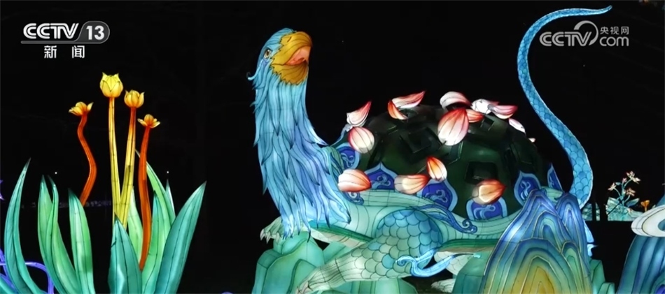 據(jù)組織方介紹,本次燈會(huì)將中國的燈彩制造技藝與巴黎風(fēng)情園的道路園景有序結(jié)合,整場(chǎng)燈會(huì)以點(diǎn)連線、穿線成面,共設(shè)東情西韻、山海有靈、煙火市集三大展區(qū)。2024年適逢龍年,龍的元素出現(xiàn)在景區(qū)各處。穿行在園區(qū),法國觀眾不僅能欣賞到傳統(tǒng)的十二生肖、亭臺(tái)樓閣,更能沉浸在《山海經(jīng)》各類瑞獸奇珍創(chuàng)造的奇幻世界當(dāng)中。
