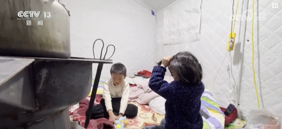 山上的兩個帳篷安置點(diǎn),現(xiàn)在已經(jīng)拉了電,每個帳篷里配備了取暖爐。這幾天,大家商量著先吃大鍋飯,一些力所能及的人先行動,把村里的老弱病小照顧起來。