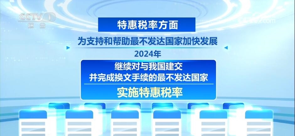 此外,在特惠稅率方面,為支持和幫助最不發(fā)達(dá)國(guó)家加快發(fā)展,2024年繼續(xù)對(duì)與我國(guó)建交并完成換文手續(xù)的最不發(fā)達(dá)國(guó)家實(shí)施特惠稅率。