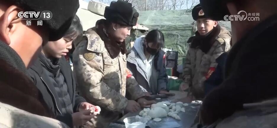 央視網(wǎng)消息:今天(12月22日)是冬至,正在執(zhí)行抗震救災(zāi)任務(wù)的部隊(duì)官兵特意準(zhǔn)備了熱氣騰騰的餃子和豐盛的食物,為群眾送去溫暖和祝福。