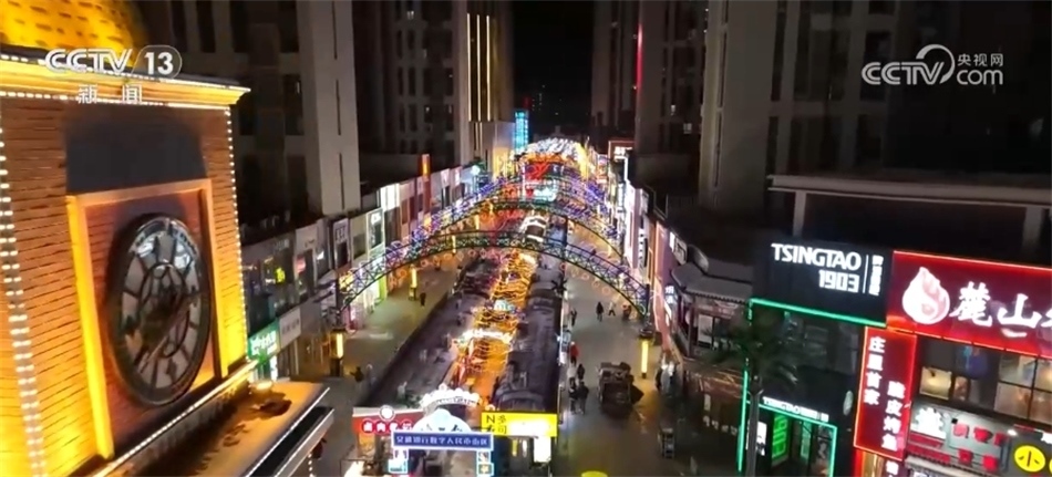 在河北石家莊火車頭步行街,街區(qū)的節(jié)日氛圍濃厚,游客們看表演、品小吃,歡度元旦假期。
