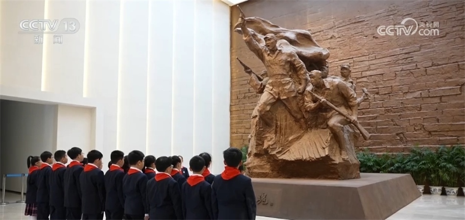 走進(jìn)新四軍紀(jì)念館,歌聲回蕩,參觀的學(xué)生們?cè)诶蠋煹膸ьI(lǐng)下唱響《新四軍軍歌》。紀(jì)念館內(nèi),一幅幅珍貴圖片、一段段感人的歷史,讓大家重溫革命先烈拋頭顱灑熱血、英勇抗敵的崢嶸歲月。