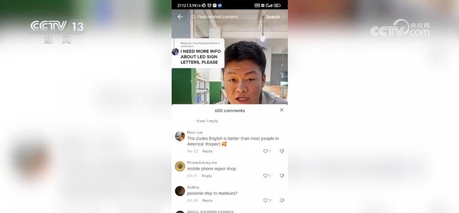 央視網(wǎng)消息:視頻里這個(gè)自稱“Tony”的小伙名叫竹宇,今年24歲。雖說講著一口地道、流利的英語(yǔ),但卻打小是在廣東東莞長(zhǎng)大的,沒有任何國(guó)外留學(xué)或生活的經(jīng)歷。他現(xiàn)在主要的工作,就是通過拍攝這些短視頻為廣州白云區(qū)一家生產(chǎn)燈牌的外貿(mào)企業(yè)招攬海外客戶,效果怎么樣?一起來看。