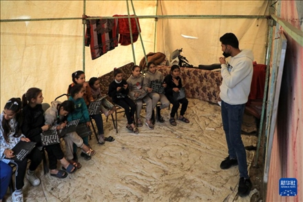 受新一輪巴以沖突影響,加沙地帶許多學校被用來收留無家可歸的民眾,學生們只能在臨時搭建的教室中學習。