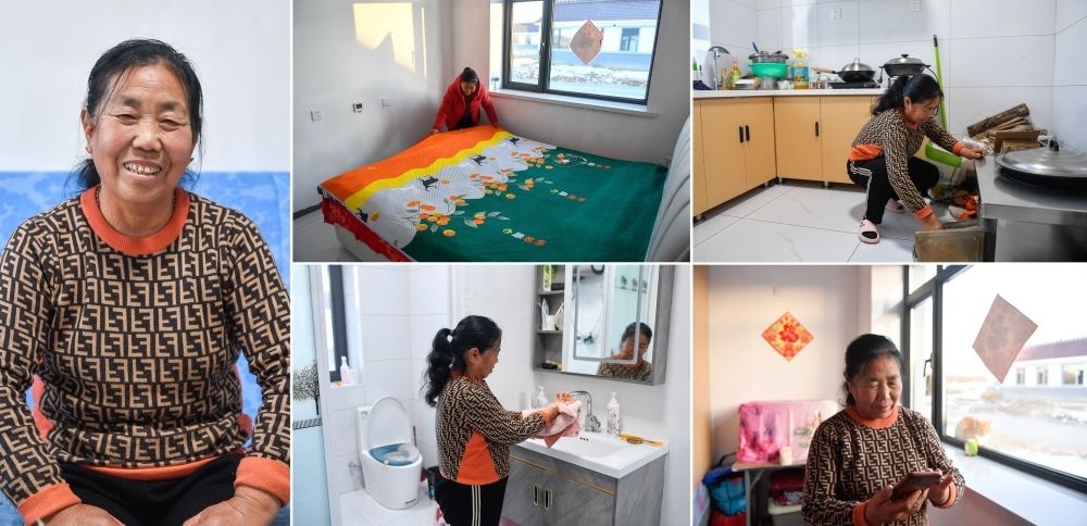 吉林省舒蘭市開原鎮(zhèn)新開村村民徐中仁在新房子中的生活場景(12月7日攝,拼版照片)。徐中仁說,“土炕”變“大床”,WIFI、自來水、室內(nèi)馬桶一應俱全,新房子讓她體驗上了“城里的生活”。新華社記者 許暢 攝