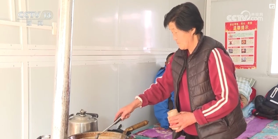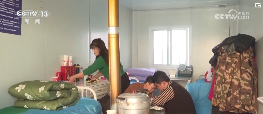 目前,安置點的水、電、通訊已經全部覆蓋,房間內床褥、火爐、電暖器等生活用品也都已備齊。中午,安置點的活動板房里飄出了陣陣飯菜香氣,親朋好友聚在一起迎接新一年的到來。