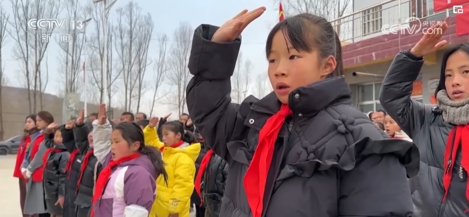 新年第一天,在積石山縣劉集鄉(xiāng)高李村,來自高李保安族春蕾小學(xué)的53名師生和高李村集中安置點的部分村民、志愿者也共同舉行了升旗儀式。孩子們對著國旗敬少先隊隊禮,村民們則注視著國旗行注目禮,表達著對祖國的敬意和深深的愛意。