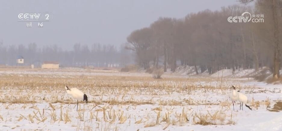 最近幾天,在內(nèi)蒙古烏蘭察布市,村民們發(fā)現(xiàn)有3只丹頂鶴正在這里逗留越冬,這在以往很少見。