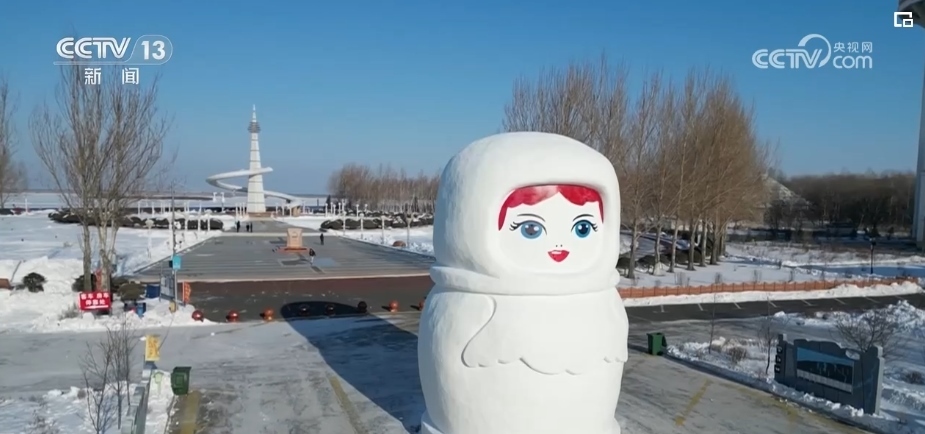黑龍江省同江市的三江口生態(tài)旅游區(qū),巧妙融合了俄羅斯套娃元素的大型套娃雪雕,為眾多市民和游客獻(xiàn)上了一場獨具魅力的冰雪藝術(shù)盛景。