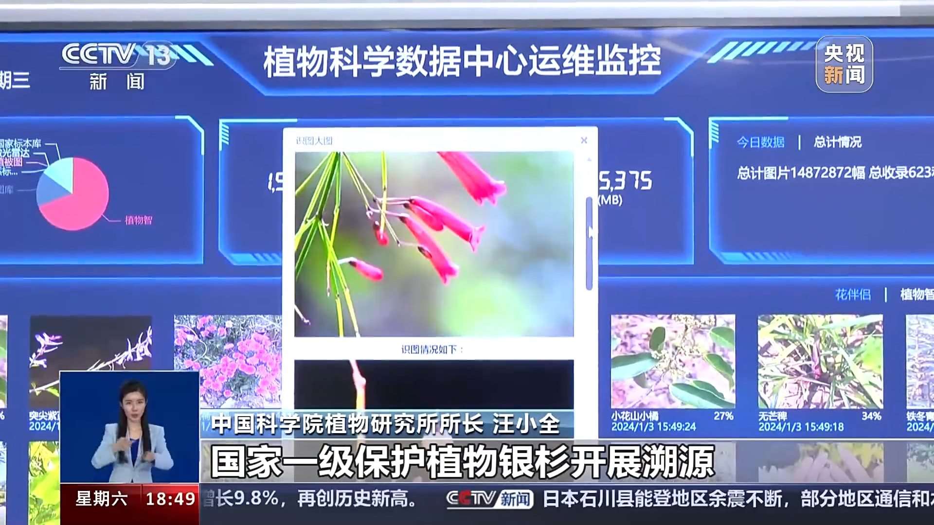 中國科學(xué)院植物研究所所長 汪小全:我們這個(gè)平臺(tái),中國的植物物種絕大部分在這當(dāng)中都有,每一個(gè)省份,每一個(gè)縣,精確到縣級(jí),都有一個(gè)詳細(xì)的物種清單,而且這些物種跟它的各種圖片、各種分布、各種物候,所有的信息都是關(guān)聯(lián)在一起的,就是一站式的。