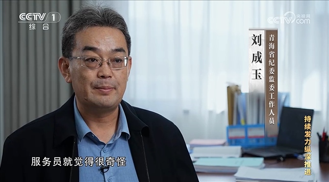 竇閩(中央紀委國家監(jiān)委機關(guān)工作人員):中央紀委國家監(jiān)委始終把落實中央八項規(guī)定精神作為監(jiān)督執(zhí)紀的底線性任務,決不允許以高原地區(qū)喝酒驅(qū)寒為違規(guī)吃喝找借口,決不允許以鄉(xiāng)黨文化根深蒂固為喝酒聚餐找理由。查辦案件過程中,我們堅持與以案促改促治同謀劃、同部署、同推進,指導青海省委、省紀委監(jiān)委在全省開展專項教育整治,推動中央八項規(guī)定精神在高原大地落地生根。