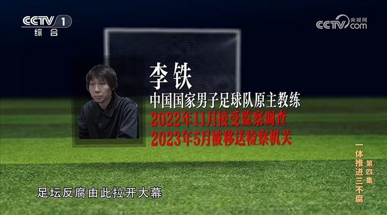 【解說(shuō)詞】李鐵是本次專(zhuān)案第一個(gè)接受監(jiān)察調(diào)查并被留置的人員,事實(shí)證明,這個(gè)切入點(diǎn)的選擇是非常精準(zhǔn)的。他既在多家俱樂(lè)部擔(dān)任過(guò)教練,又曾擔(dān)任中國(guó)國(guó)家男子足球隊(duì)主教練,在足球領(lǐng)域關(guān)系盤(pán)根錯(cuò)節(jié),以他為突破口縱深挖掘、橫向拓展,牽出了從聯(lián)賽到國(guó)家隊(duì)、從俱樂(lè)部到足協(xié)的若干涉嫌違紀(jì)違法犯罪人員,以及種種黑幕和制度漏洞。