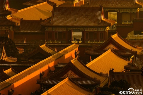 北京冬日傍晚,故宮建筑在夕陽(yáng)中呈現(xiàn)迷人光影。