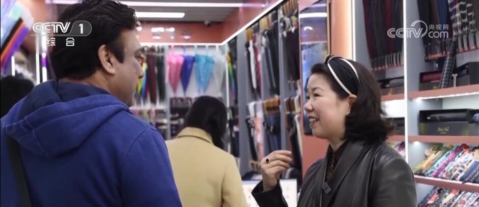 義烏國(guó)際商貿(mào)城經(jīng)營(yíng)戶(hù) 張吉英:很多人見(jiàn)了我,哇,好厲害啊,你會(huì)說(shuō)5個(gè)國(guó)家語(yǔ)言啊。我說(shuō),不是我厲害,是科技的力量。