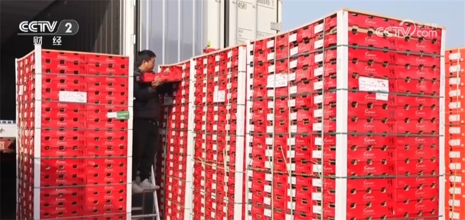 臨近春節(jié),除了車厘子這一主要交易品種,橘橙類、蘋果類、提子類等銷售量也比較大,優(yōu)質(zhì)的產(chǎn)品也吸引了來自全國各地的采購商前來選購。最近每天有2400噸左右的進口水果從這里發(fā)出,銷往全國各地,最遠到達新疆。