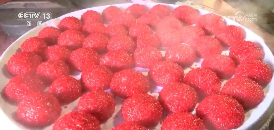 “紅粑粑”是貴州銅仁市江口縣的傳統(tǒng)美食。每年春節(jié)前,當(dāng)?shù)厝罕娋蜁?huì)制作“紅粑粑”過(guò)大年。圓圓的“紅粑粑”寓意著新年富足,更代表著全家團(tuán)團(tuán)圓圓、幸福美滿。