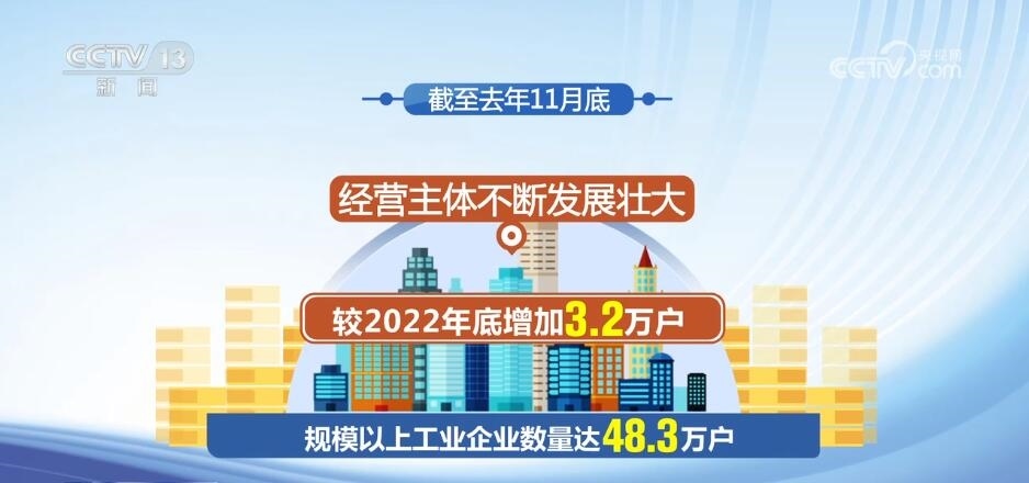 數(shù)據(jù)顯示,截至去年11月底,規(guī)模以上工業(yè)企業(yè)數(shù)量達(dá)48.3萬(wàn)戶(hù),較2022年底增加3.2萬(wàn)戶(hù),經(jīng)營(yíng)主體不斷發(fā)展壯大。制造業(yè)PMI生產(chǎn)經(jīng)營(yíng)活動(dòng)預(yù)期指數(shù)自2023年10月連續(xù)3個(gè)月上升,全年指數(shù)均高于臨界點(diǎn),制造業(yè)企業(yè)對(duì)發(fā)展信心穩(wěn)定恢復(fù)。