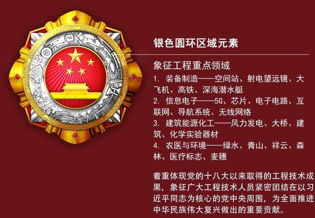 獎(jiǎng)?wù)轮械墓こ碳夹g(shù)元素選取的是我國(guó)具有代表性的工程技術(shù)成果,如高速鐵路、5G、港珠澳大橋、雜交水稻等,象征我國(guó)科技創(chuàng)新事業(yè)發(fā)生的歷史性、整體性、格局性重大變化。