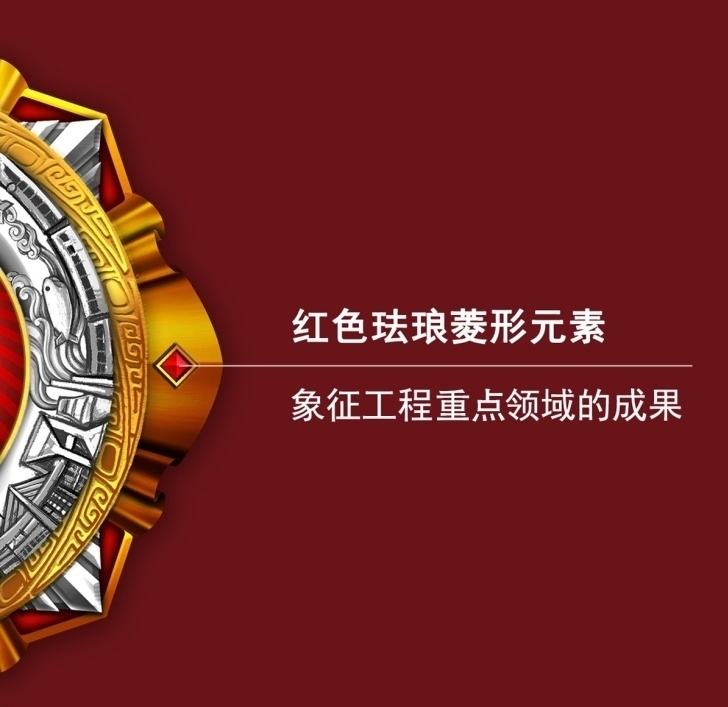獎(jiǎng)?wù)抡麦w整體是個(gè)國(guó)徽的形狀,中間則是經(jīng)典的五角星與天安門(mén)元素,象征國(guó)家級(jí)榮譽(yù)。外圍的旗幟寓意獲獎(jiǎng)?wù)叩哪7兑I(lǐng),在黨的領(lǐng)導(dǎo)下,為實(shí)現(xiàn)理想永遠(yuǎn)奮斗。