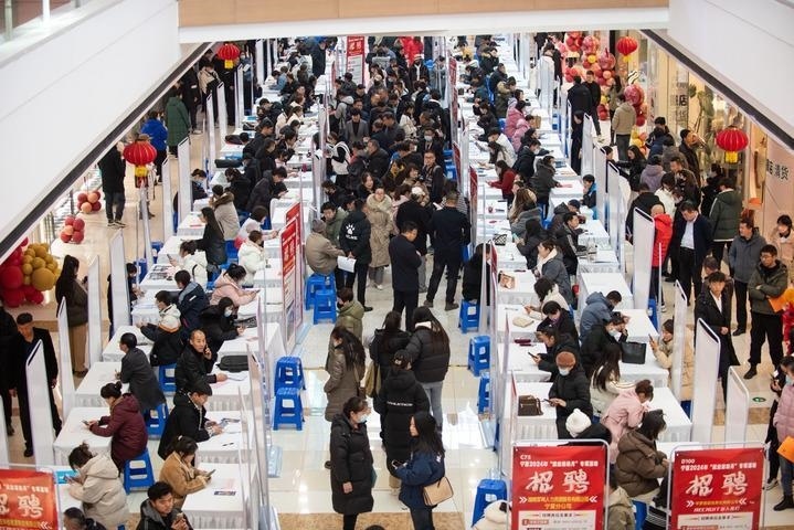 這是2024年1月5日在寧夏石嘴山市萬達廣場拍攝的寧夏回族自治區(qū)就業(yè)援助月專項服務活動現(xiàn)場。新華社記者 李旭倫 攝