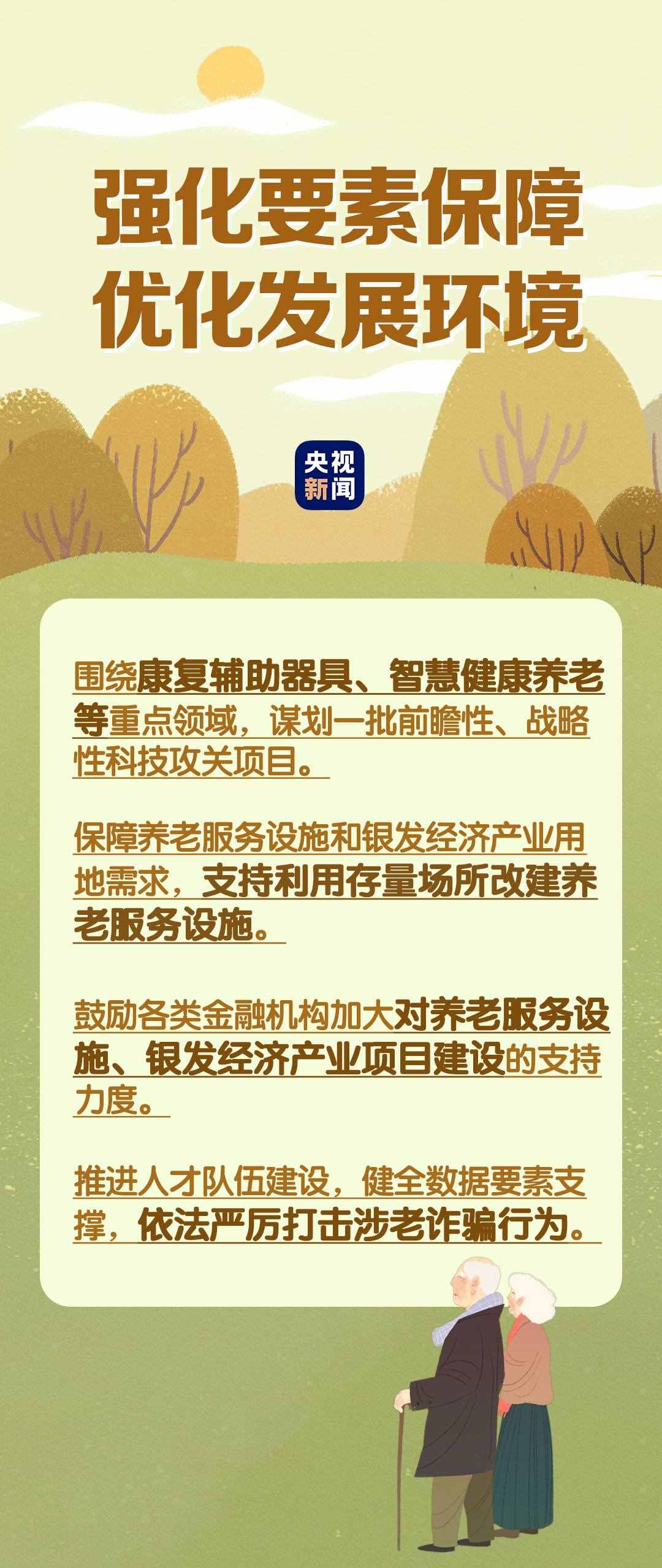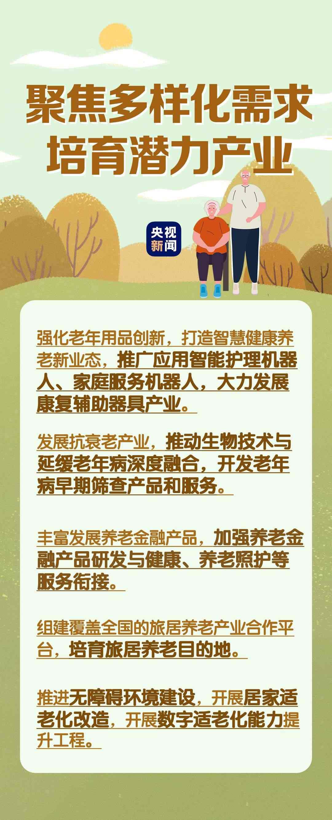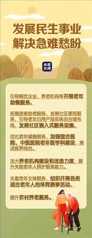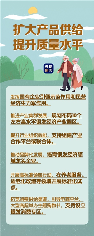 在民生事業(yè)方面,國(guó)家將擴(kuò)大和發(fā)展七方面的服務(wù),包括養(yǎng)老助餐、居家助老、社區(qū)便民、老年健康、養(yǎng)老照護(hù)、老年文體、農(nóng)村養(yǎng)老等方面的服務(wù)。國(guó)務(wù)院辦公廳印發(fā)《關(guān)于發(fā)展銀發(fā)經(jīng)濟(jì)增進(jìn)老年人福祉的意見(jiàn)》中提出了4個(gè)方面舉措,小編根據(jù)文件內(nèi)容進(jìn)行了簡(jiǎn)要梳理,一圖了解“銀發(fā)經(jīng)濟(jì)”核心要點(diǎn)。↓↓↓