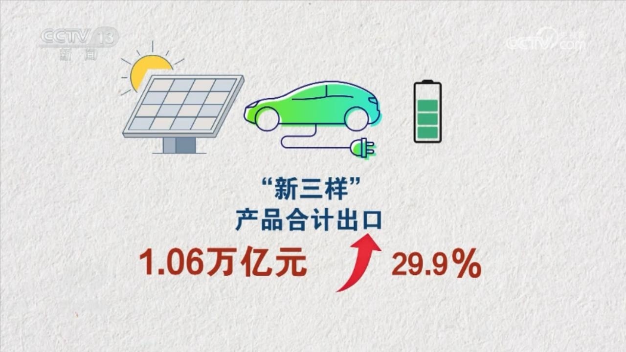 2023年,我國出口機電產(chǎn)品13.92萬億元,增長了2.9%,占出口總值的58.6%;同期勞動密集型產(chǎn)品出口4.11萬億元,占出口總值的17.3%。機電產(chǎn)品中,電動載人汽車、鋰離子蓄電池及太陽能電池“新三樣”產(chǎn)品合計出口1.06萬億元,首次突破萬億元大關,增長了29.9%。船舶、家用電器的出口分別增長35.4%和9.9%。