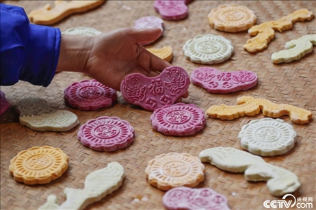 進(jìn)入臘月,安徽省黃山市徽州區(qū)潛口鎮(zhèn)潛口村,村民用新鮮的果蔬汁制作出多彩徽州米粿,色彩各異、造型別致的米粿琳瑯滿目,透出濃濃的年味。