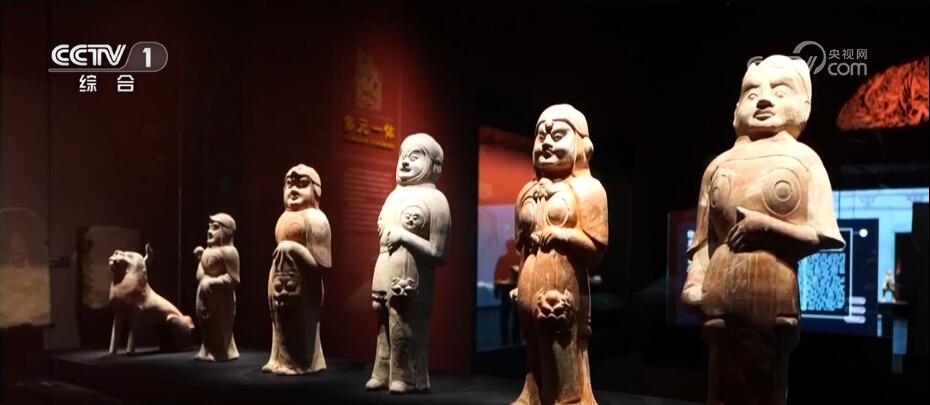 帶著濃濃異域風(fēng)情的還有晉陽(yáng)古城遺址出土的列隊(duì)成陣的駱駝俑、胡人俑。專家表示,這些文物都反映出古代絲綢之路上,晉陽(yáng)曾是東西方文明交流十字路口的重要古城。在展出的1000多件文物中,唐代郭行墓壁畫也十分引人注目,墓主郭行曾追隨唐太宗李世民,是一名武將。
