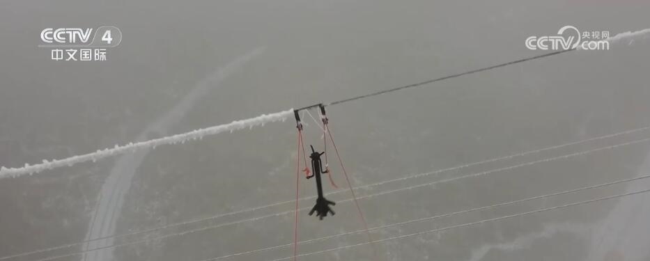 貴州:線路覆冰 電力人員用機械裝置除冰