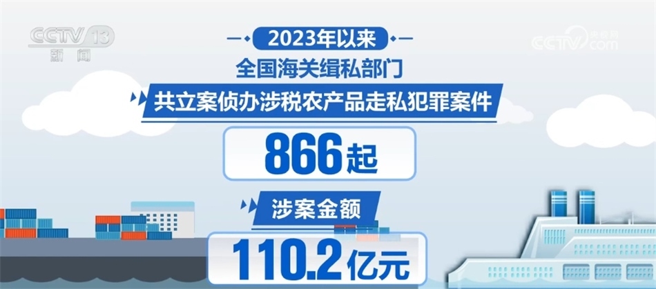 針對農(nóng)產(chǎn)品走私問題,海關(guān)緝私部門加大打擊凍品、煙草、水果、食糖、糧食等農(nóng)產(chǎn)品走私力度,推動強(qiáng)化對運(yùn)輸、倉儲、銷售環(huán)節(jié)的清查整治。2023年以來,共立案偵辦涉稅農(nóng)產(chǎn)品走私犯罪案件866起,涉案金額110.2億元。