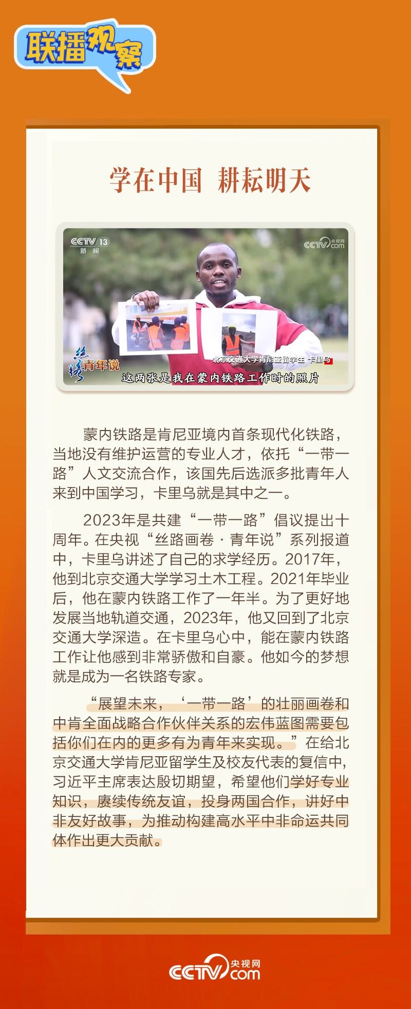 日前,北京交通大學(xué)肯尼亞留學(xué)生及校友代表致信習(xí)近平主席,表示非常高興來到中國學(xué)習(xí)鐵路運營管理知識。1月17日,習(xí)近平主席復(fù)信表達(dá)欣慰和喜悅之情,“蒙內(nèi)鐵路是中肯共建‘一帶一路’旗艦項目和成功典范。我高興地看到,你們因這條‘幸福路’與中國結(jié)緣……”