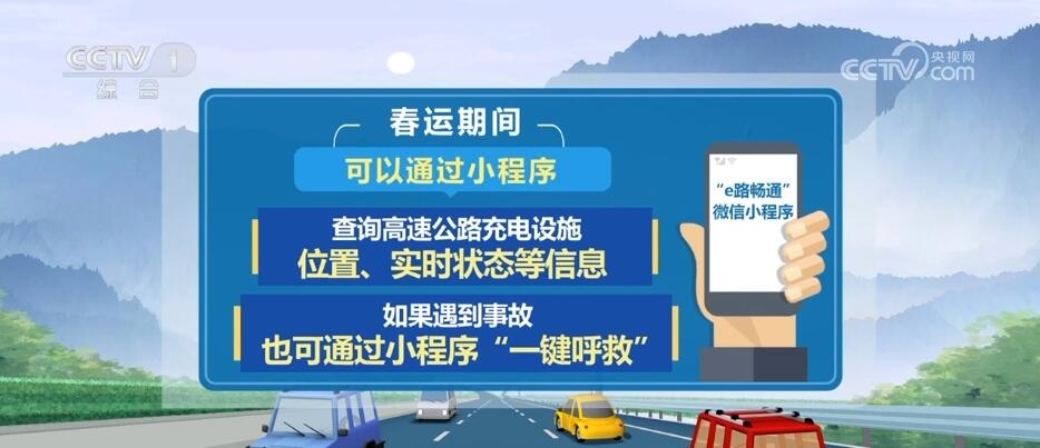 為提升今年春運(yùn)服務(wù),交通運(yùn)輸部還上線“e路暢通”微信小程序,春運(yùn)期間,大家可以通過小程序,查詢高速公路充電設(shè)施位置、實(shí)時狀態(tài)等信息,如果遇到事故,也可通過小程序“一鍵呼救”。