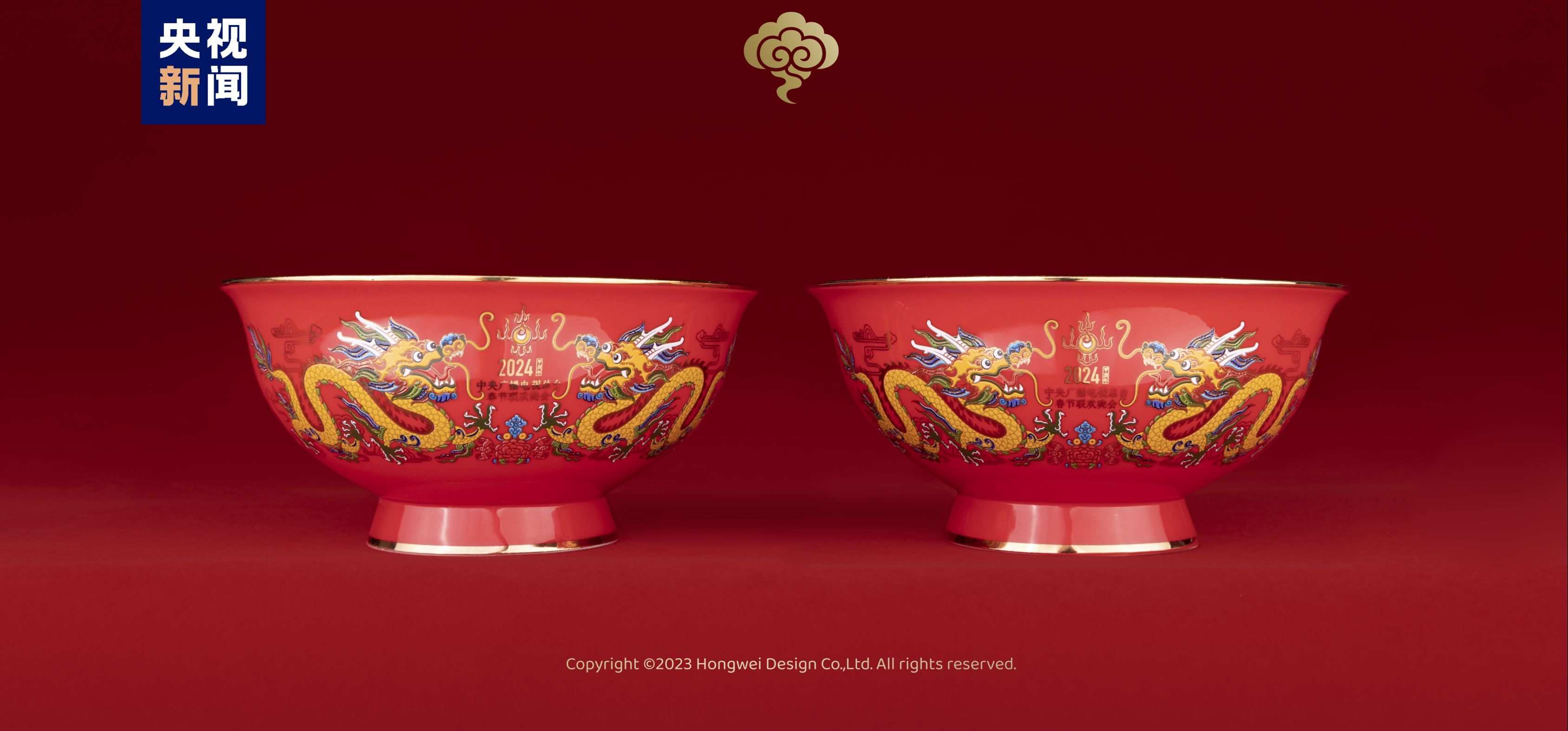 總臺(tái)文創(chuàng)的龍碗主畫(huà)面取自中國(guó)民間吉祥裝飾圖案“雙龍戲珠”,采用對(duì)稱(chēng)型構(gòu)圖,寓意富貴吉祥,幸福安康。龍碗色彩鮮艷明快,烘托出民間新年的喜慶氛圍。