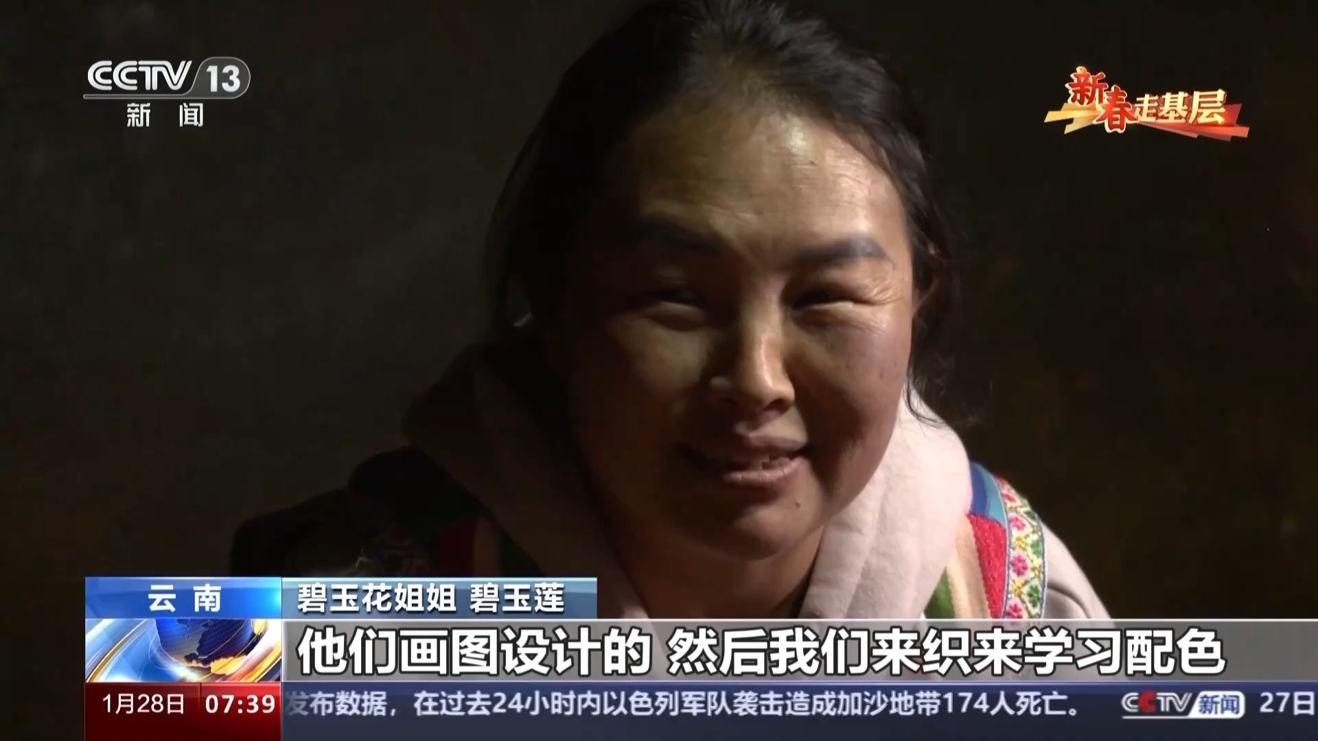 在獨龍江鄉(xiāng),記者見到了34歲的獨龍族婦女碧玉花,她和姐妹們春節(jié)前,要為客戶趕制一批獨龍?zhí)?。紗線剛剛運來,她們就迫不及待地趕往河對岸的工作室。